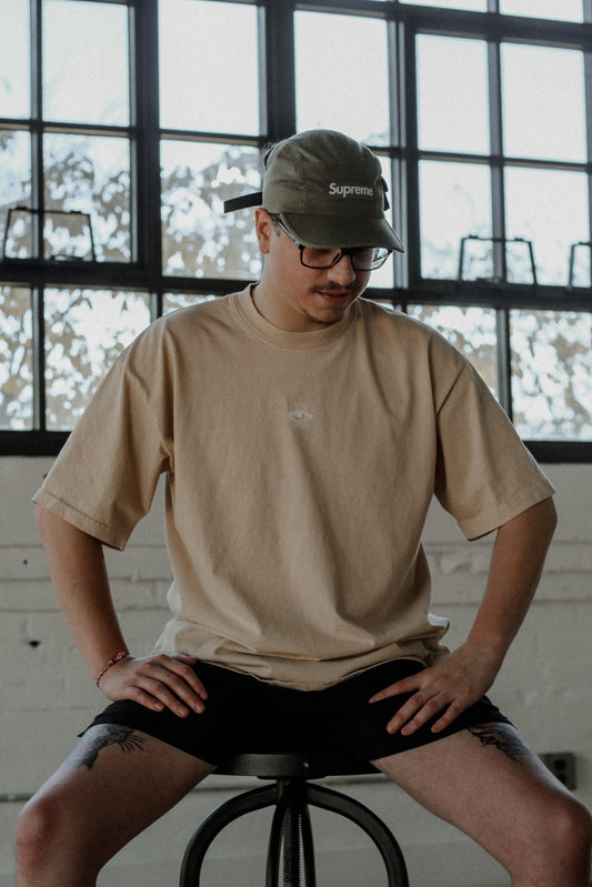 HAPPY TO BE HERE (HEAVY WEIGHT) TEE-BEIGE